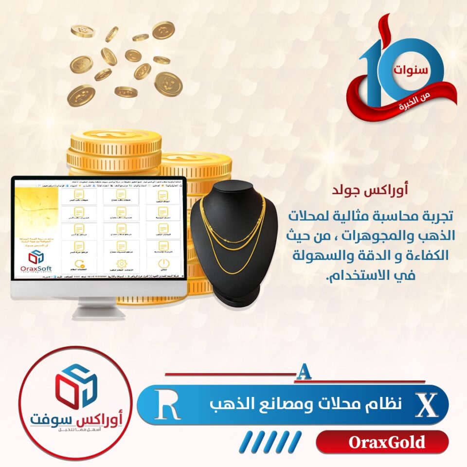 إنه خيار مثالي أن تستخدم نظام أوراكس جولد الرائد في إدارة عمليات بيع وشراء الذهب.يقوم هذا النظام بإدارة العمليات اليومية لشراء وبيع الذهب المصنعوالكسر بعياراته المتعددة، وتحديث أسعار العيارات الذهبية بسلاسة. كما يُديرالنظام مخزون أصناف الذهب بفعالية ويُراقبه بشكل دقيق،